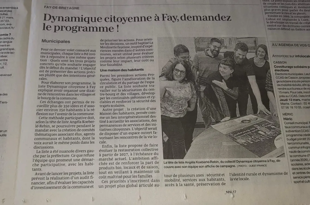 Et (re)découvrez notre démarche, nos priorités pour Fay-de-bretagne et nos propositions relayées dans la presse :
