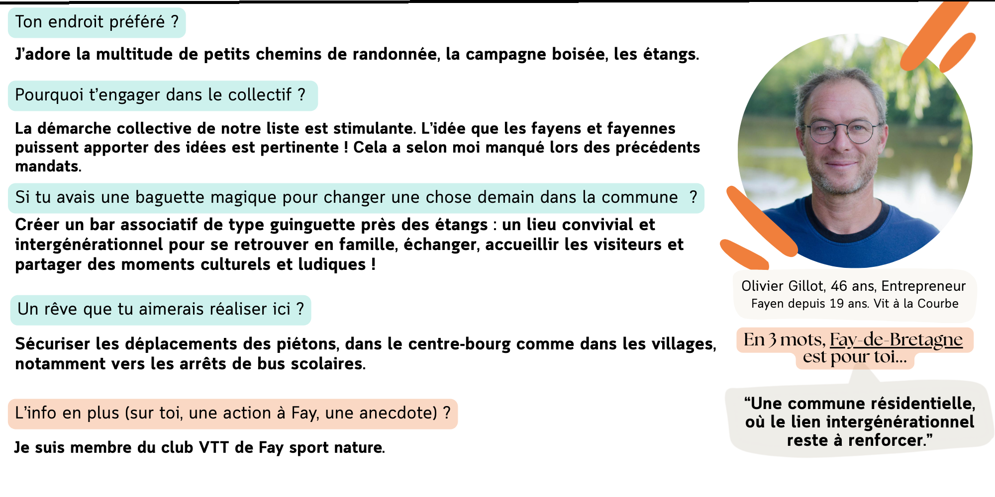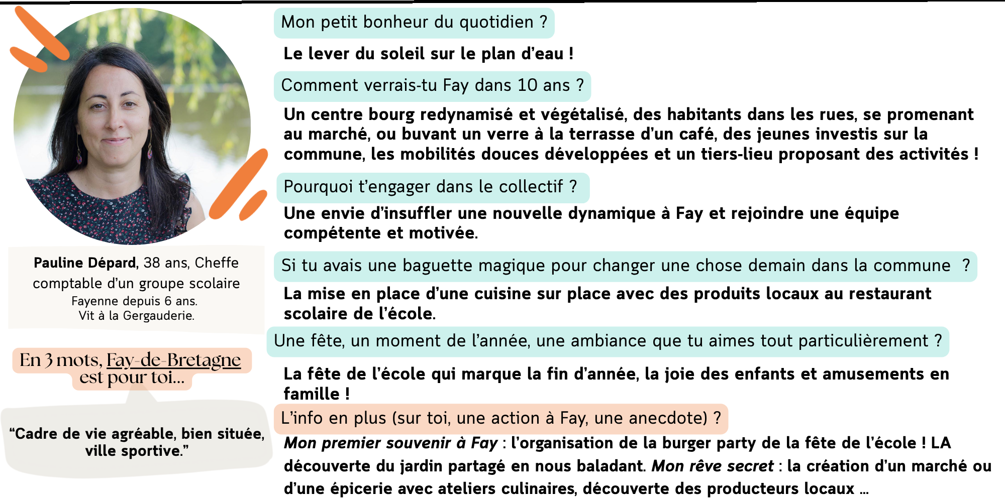 Nous sommes des habitantes et des habitants de Fay-de-Bretagne, de sensibilités et d'horizons différents, rassemblé·es autour d’une même envie : nous pensons que c'est ensemble que nous pourrons construire une commune vivante et accueillante, dans le respect des idées de chacun et avec le souci de l’intérêt général.